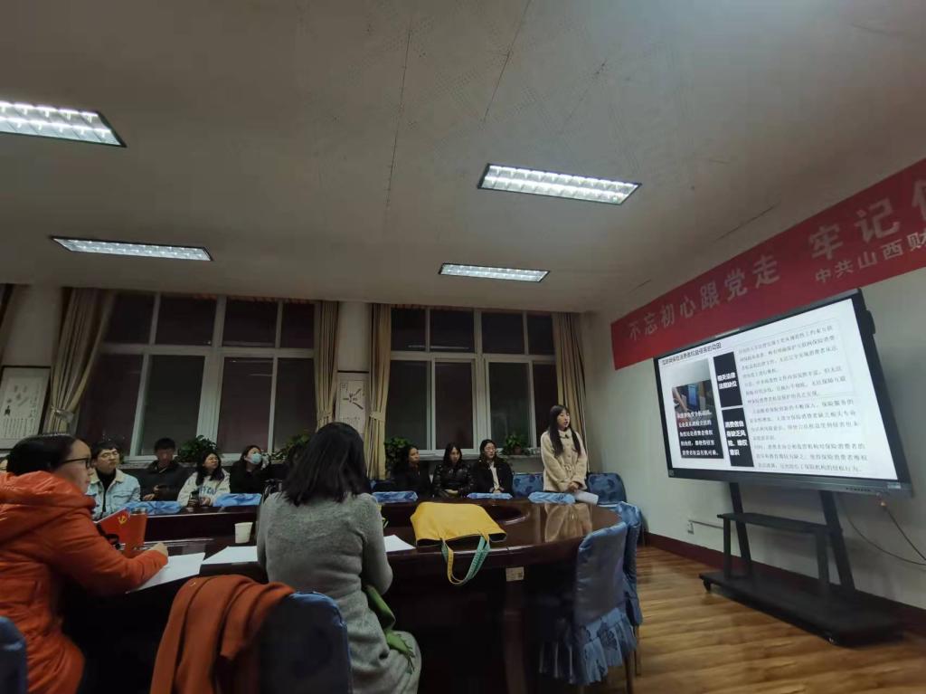 2021年12月9日晚,77779193永利2021-2022学年第6期学术沙龙活动在高姝姝同学的主持下如期举行,本次沙龙的主题是"互联网保险中消费者权益的保护", 由2021级保险专硕班的洪紫含和杨洁为大家作汇报讲解,本次沙龙有幸邀请到王朝晖老师和高侯平老师作为讲评嘉宾,2021级各专业的同学参加了本次沙龙。