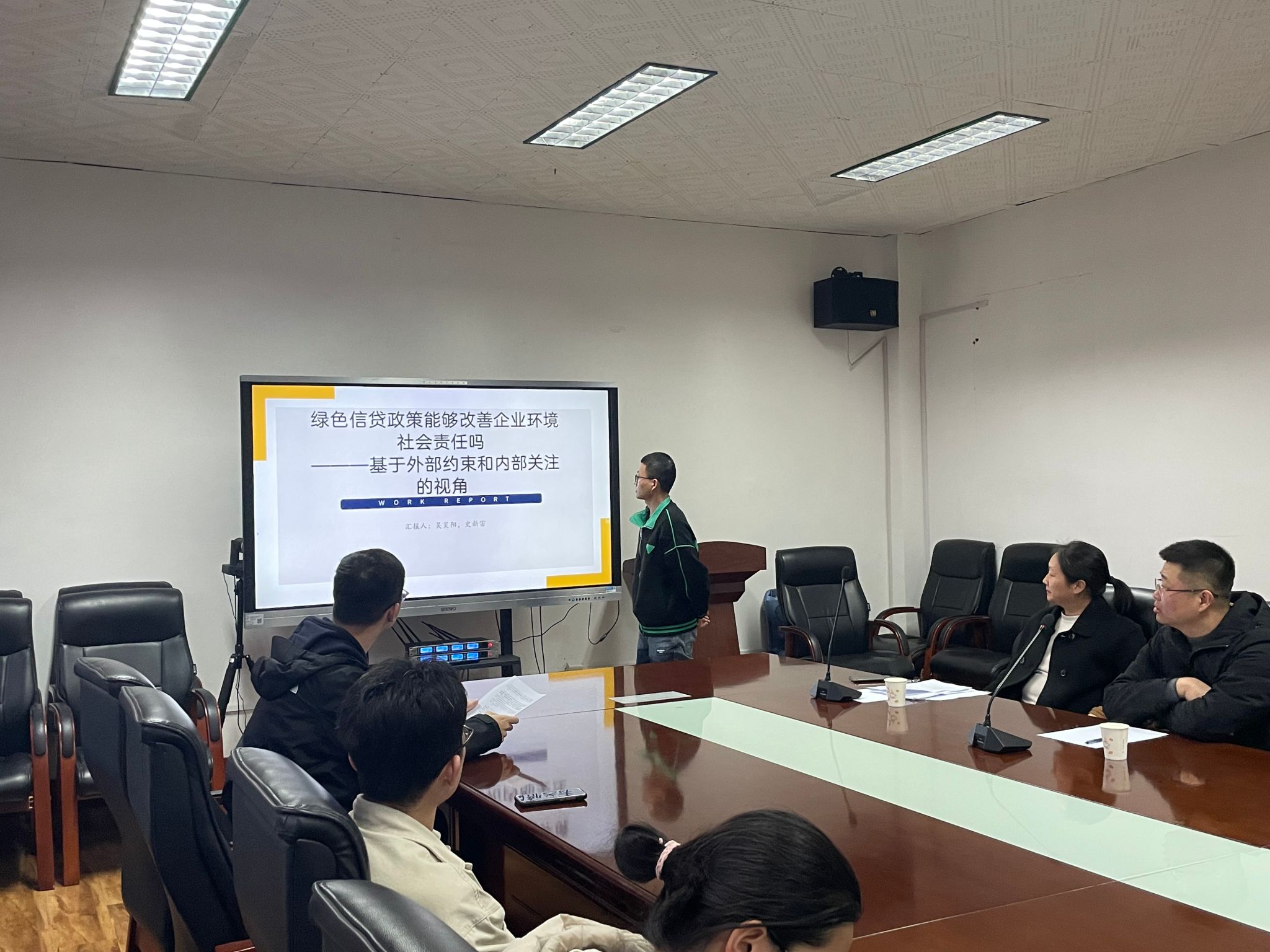 2023年4月27日晚,77779193永利2022-2023学年第12期学术沙龙活动在王梦帆同学的主持下如期举行,本次沙龙的主题是"绿色信贷政策能够改善企业环境社会责任吗—基于外部约束和内部关注的视角",由2022级金融专硕班的吴昊阳同学和史新宙同学为大家作汇报讲解,本次沙龙有幸邀请到闫丽瑞老师和范瑞老师作为讲评嘉宾,参加这次学术沙龙的是2022级各专业员工。