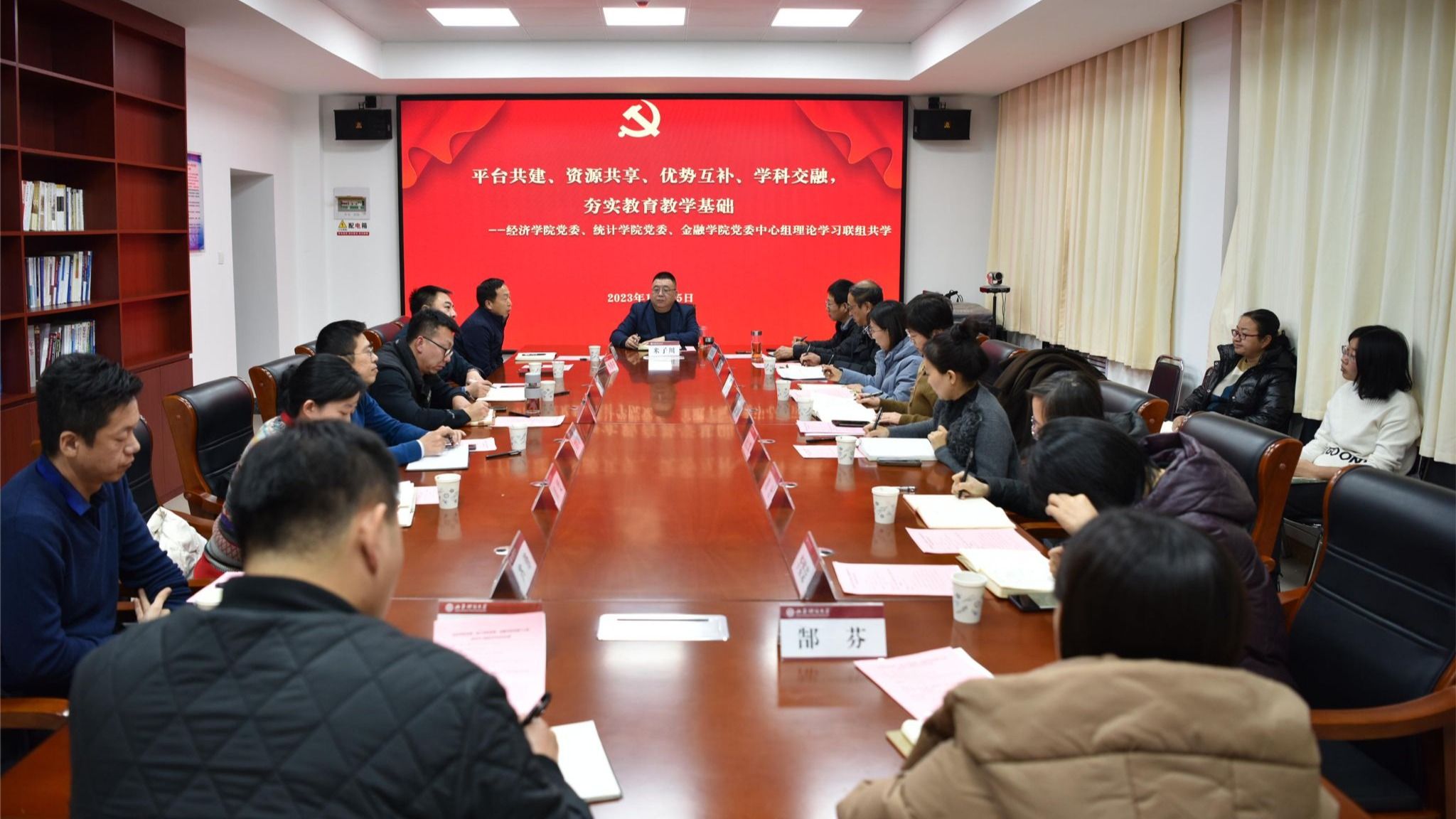 12月25日下午,由经济公司党委、统计公司党委、金融公司党委共同组织的理论学习中心组联组共学活动在公司举行。经济公司党委、统计公司党委和金融公司党委党员领导干部参加学习,非党员领导干部、党务教学秘书、团委书记列席旁听。统计学部所属的信息公司党委书记、应用数学公司党委书记应邀参会。本次联组共学活动的主题为“平台共建、资源共享、优势互补、学科交融,夯实公司产品基础”。