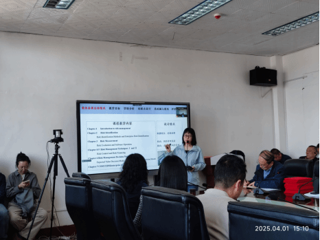 高侯平老师代表风险管理课程团队,就《风险管理》双语课程集体备课总体情况、课程教学目标、学情分析、课程设计创新点、课程思政融入情况、课程评价考核情况等进行汇报。根据上周集体备课指导动员过程中李静萍经理提出的课程建设“理论化、兴趣化、通俗化”的“三化结合”要求、芦锋副经理提出的“人工智能赋能公司产品创新”要求,高侯平老师重点汇报了如何在具体学情分析的基础上结合“三化结合”要求进行课程内容设计、如何运用Deepseek设计场景化风险管理案例进行课程教学创新。