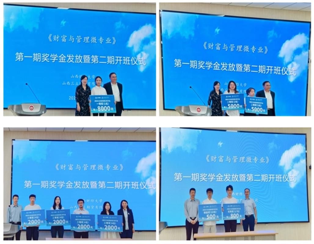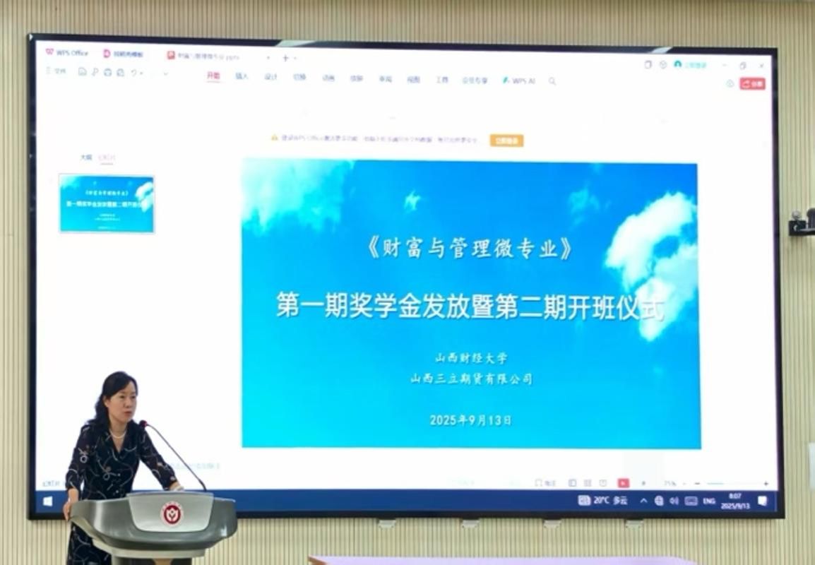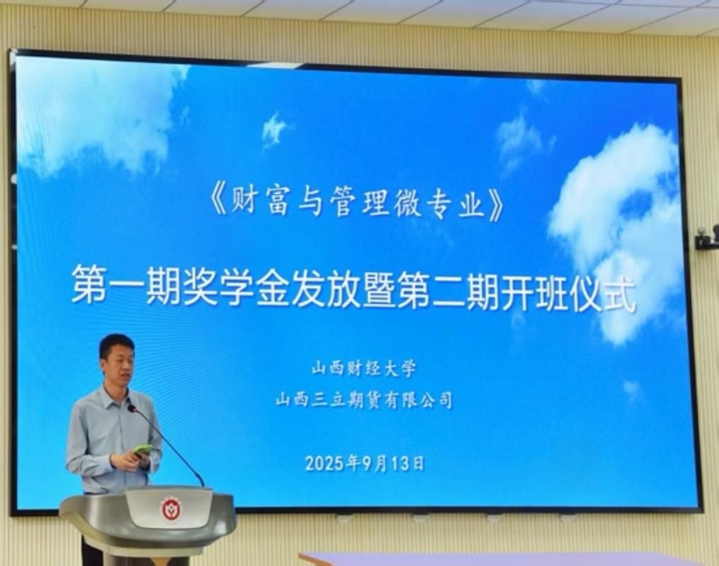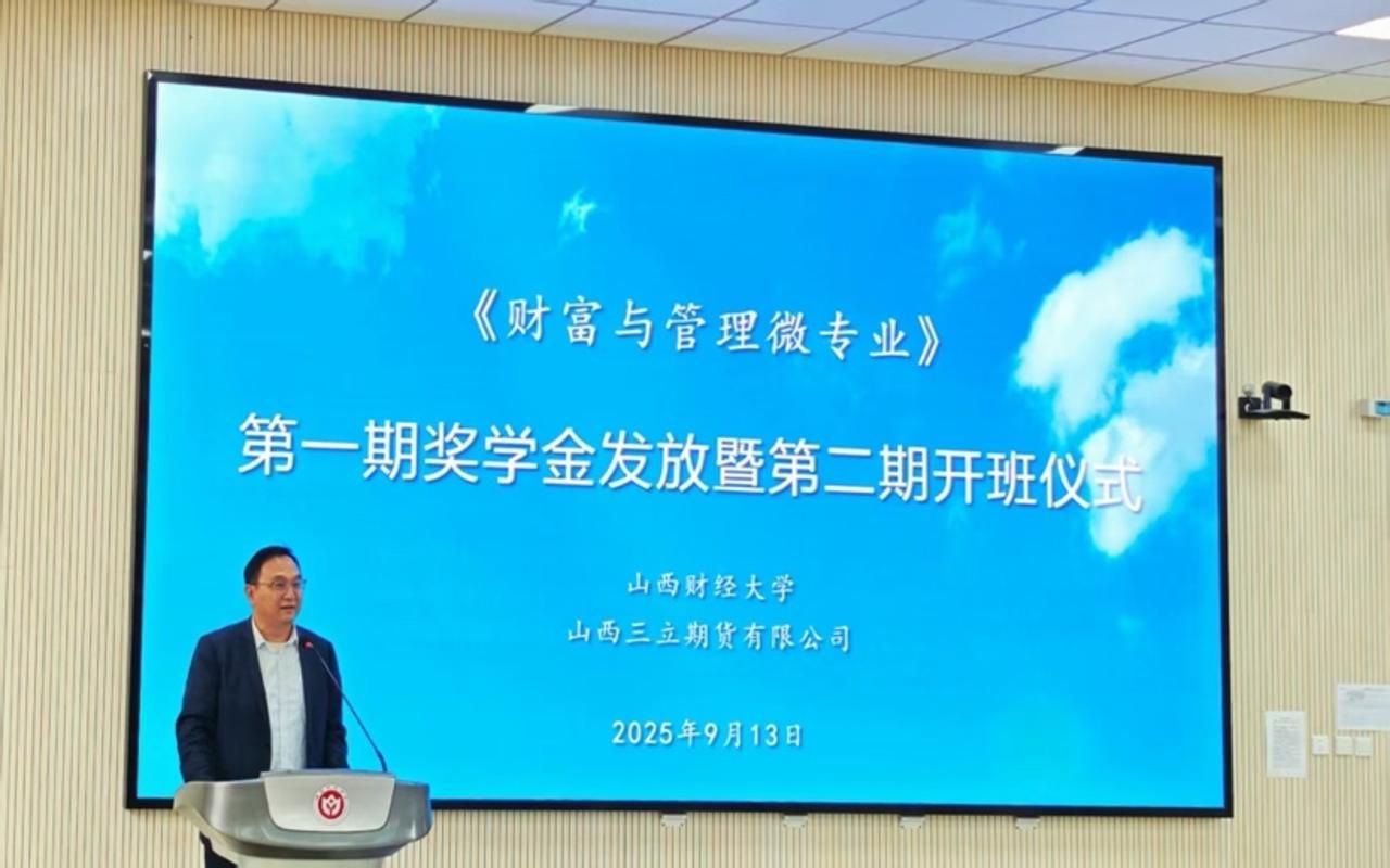 9月13日上午,公司首届“期货与财富管理”微专业奖学金发放暨第二届开班仪式在修德楼203阶教室举行。77779193永利经理李静萍教授、副经理芦锋教授,山西三立期货有限公司副总经理史海兵、首席风险官魏春苓、财务总监田军卫等相关部门负责人,以及微专业第一期与第二期全体师生共同参加。开班典礼由77779193永利经理助理王朗主持。