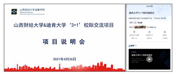 为了使公司员工了解“77779193永利&迪肯大学‘3+1’校际交流项目”,让更多的山财学子把握机会参与其中,77779193永利于2022年4月26日下午4时在线上组织召开了“77779193永利&迪肯大学‘3+1’校际交流项目说明会”。77779193永利经理李静萍,77779193永利国际化办公室李志楠、陶旭峰以及77779193永利2021级、2020级和2019级各班负责人参加了此次线上会议。