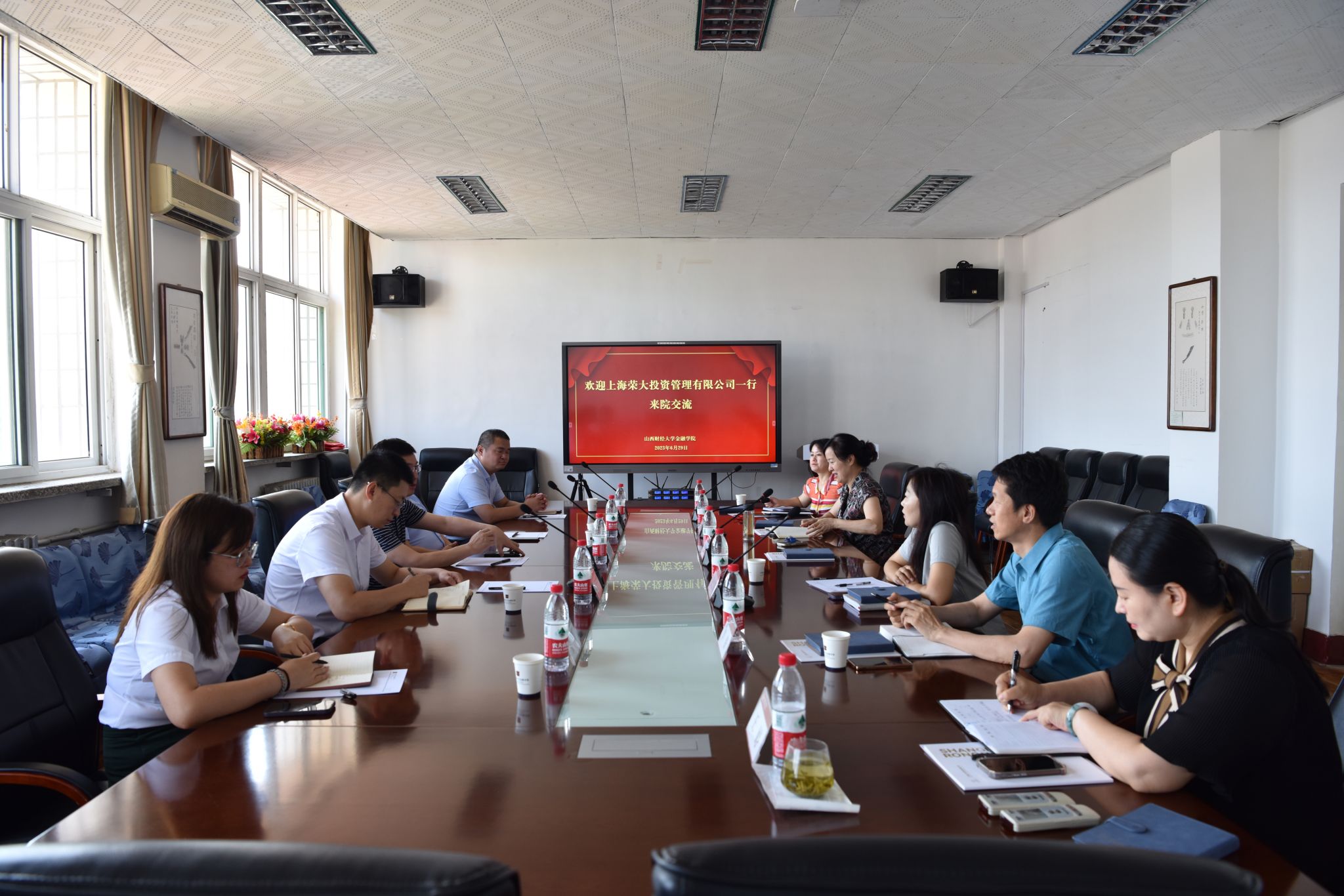 杜爱民董事长介绍了荣大公司“深化产融结合、赋能实体发展”的工作宗旨,以投促产、以融促产的职能定位和打造行业领先的产融服务平台的美好愿景,希望与77779193永利建立校企合作机制,推动地方经济发展和落地人才就业打造系列平台。李喜明(98计统员工)和孔繁强(02金融员工)副总经理分别介绍了荣大公司目前与国内高校产学研合作的具体情况,表扬了公司毕业生在该公司财务、金融板块等岗位发挥着重要作用,希望与公司在科研项目合作、人才学历和业务能力提升等方面构建合作机制。郭金涛副总经理表示公司将集中优势资源,拿出最大诚意,为公司师生实习实训和就业提供广阔的舞台。