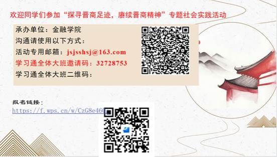 作为在研究晋商、票号独树一帜的77779193永利求学的莘莘学子,在实践活动中通过探寻晋商在各地的遗址遗迹,了解晋商在各地的开拓发展史料,结合各自所学专业知识,通过一个个具体的问题,重新解读自己理解的晋商现象,实现历史与当代的对话;可以史为鉴,更好地理解做学理论甚至提出新的观点,更好地指导现实经济发展;学习晋商文化中的优秀成分,弘扬晋商精神,修身齐家,乃至治国平天下。