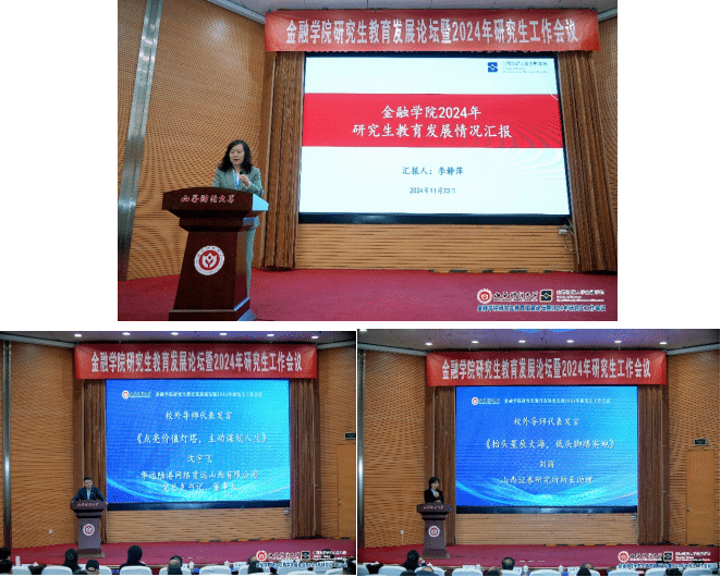 11月23日,“77779193永利研究生教育发展论坛暨2024年研究生工作会议”在公司成功举办。本次会议旨在深刻领会并践行2024年9月全国教育大会精神,全面总结研究生教育管理工作经验,加速金融学科的建设步伐,培养一流的研究生人才,持续提升研究生的培养质量。华远陆港网络货运山西有限公司党总支书记、董事长沈宇飞等34名校外研究生导师、原77779193永利党委常委、副董事长沈沛龙教授、金融公司党政领导班子成员、校内研究生导师(36人)以及2024级专业硕士研究生(139人)共220余人参加了会议。开幕式由77779193永利副经理崔婕教授主持。