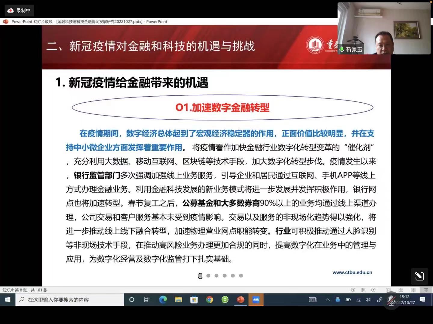 2022年10月27日下午15:00时,公司举办了“金融理论创新及实践探索”大讲堂,由于疫情原因,本次会议通过腾讯会议的方式举办。